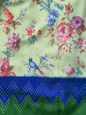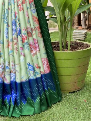 IKKAT DIGITAL FLORAL PRINT GREEN SAREE