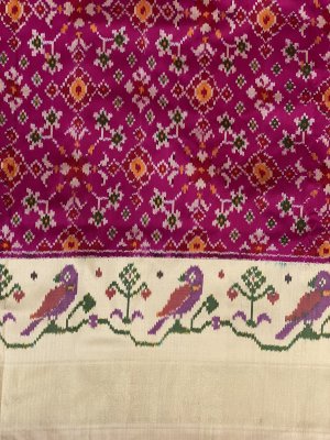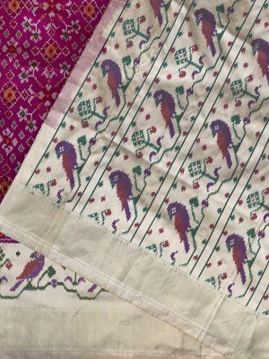 White Ikkat Silk Saree