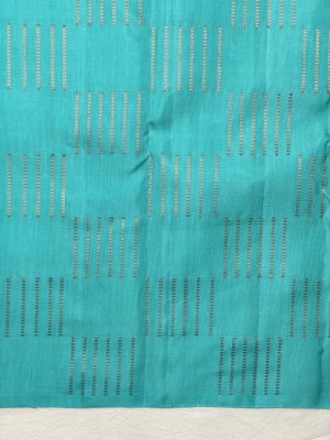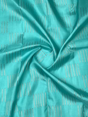 The soft silk brocade sky blue saree exudes grace gold and gold zari buttas plain all over. Accentuated with a no border concept. The contrast antique gold zari brocade pallu with tassels and contrast-plain blouse with zari borders perfectly finish the piece.