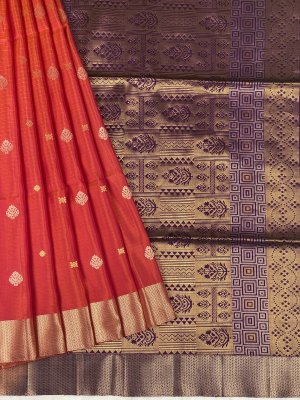 Stunning Red and Purple Soft Silk Saree