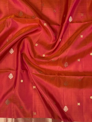 This exquisite saree features a vibrant red and purple combination, enhanced by intricate booty printing. Perfect for festive and special occasions, this saree blends traditional elegance with modern style, making style, making it a standout piece in any wardrode