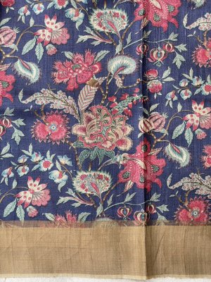 Brown Tussar Printed Silk Saree