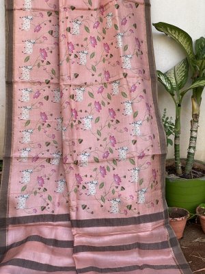 Pink Tussar Silk Saree
