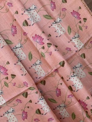 TUSSAR PEACH SILK SAREE